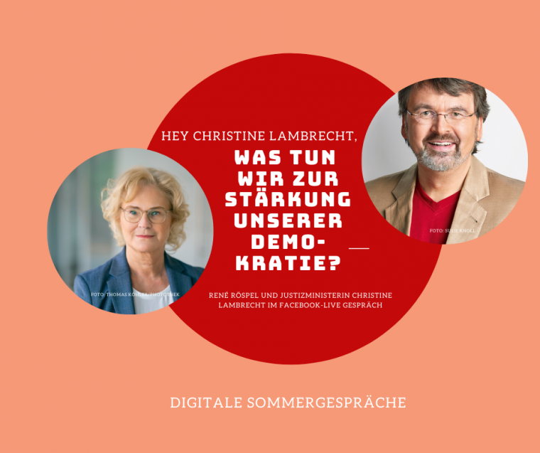 Der heimische SPD-Bundestagsabgeordnete René Röspel lädt Bürgerinnen und Bürger dazu ein, im Rahmen von „Digitalen Sommergesprächen“ mit ihm und bekannten politischen Persönlichkeiten zu diskutieren. Nächste Gesprächspartnerin ist die Bundesjustizministerin Christine Lambrecht am Dienstag, dem 8. September, um 15.30 Uhr. Sie nimmt Stellung zur Frage „Was tun wir zur Stärkung unserer Demokratie?“ Röspel streamt die Gespräche mit seinen Gästen live auf seiner Facebook-Seite www.facebook.com/Roespel/live. So besteht die Möglichkeit, sich interaktiv über die entsprechende Kommentarfunktion an der Diskussion zu beteiligen und Fragen zu stellen. Fragen können auch vorab per E-Mail an rene.roespel@bundestag.de eingereicht werden.