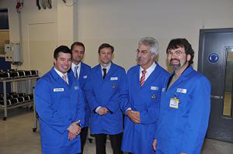 René Röspel, MdB (rechts) beim Besuch des Hagener KOSTAL-Werks mit (von links) Andreas Kostal, Frank Burghardt (Bereichsleiter Vertrieb), Markus Vetter (Leiter Marketing und Kommunikation) und KOSTAL-Industrieelektrik-Geschäftsführer Axel Zimmermann.